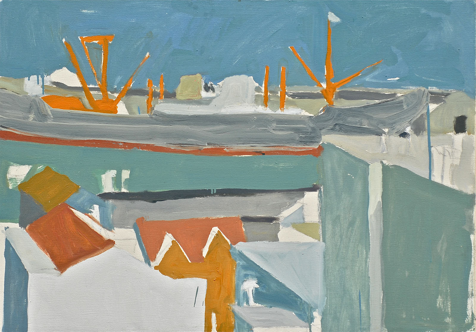“His earliest landscapes are pictures from the West Coast made during Shank’s time living in San Francisco. Interested in perspective and spatial considerations, these works reflect nuances of location that are fragmented and abstract in presentation. Shank’s signifiers become more literal overtime, as his interest in the form of nature (specific flora and fauna) and cubism become increasingly evident in ‘San Francisco Bay with Iceplant’ (1972) and ‘The Sonora Desert at Ajo’ (1973).”