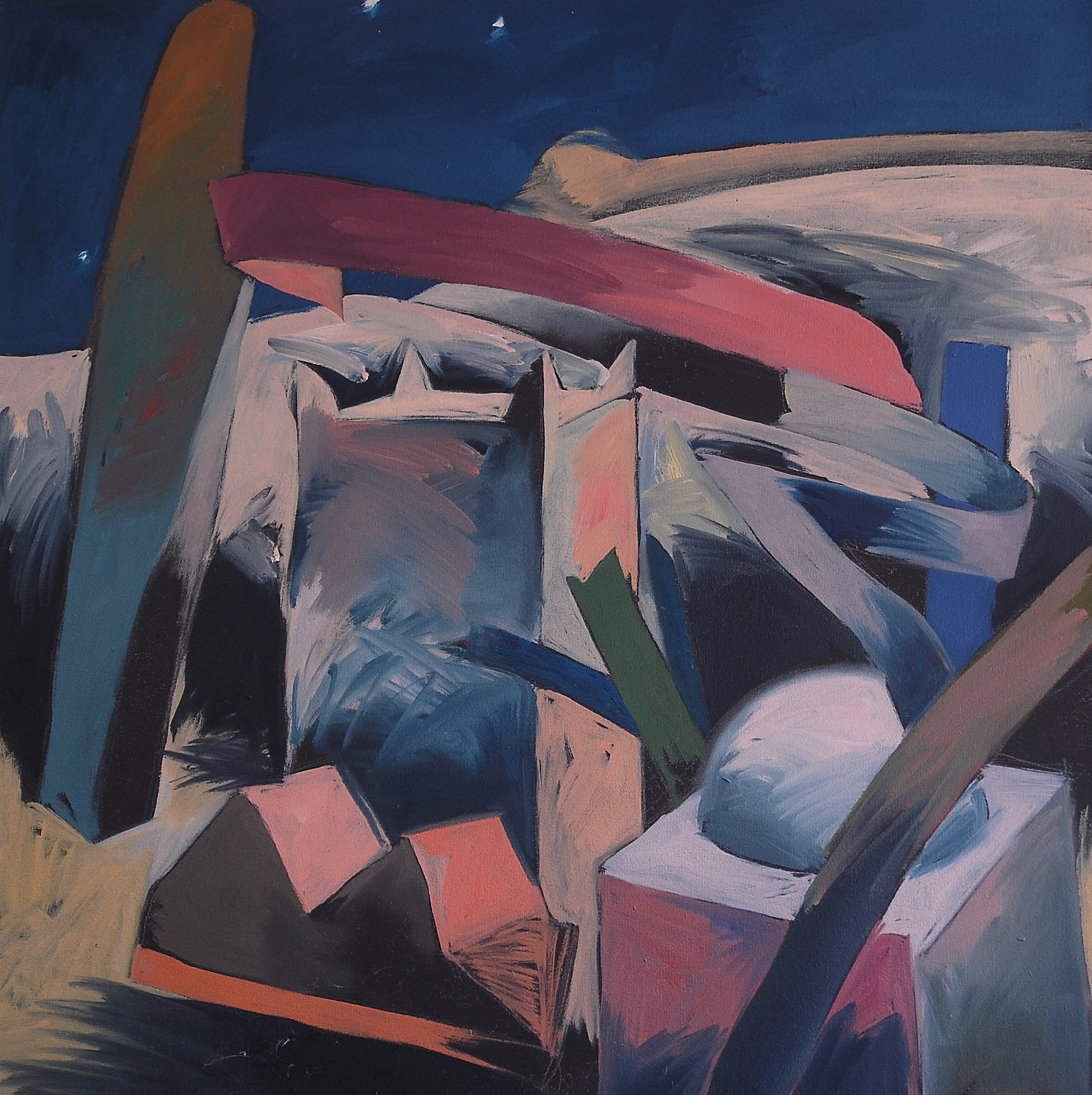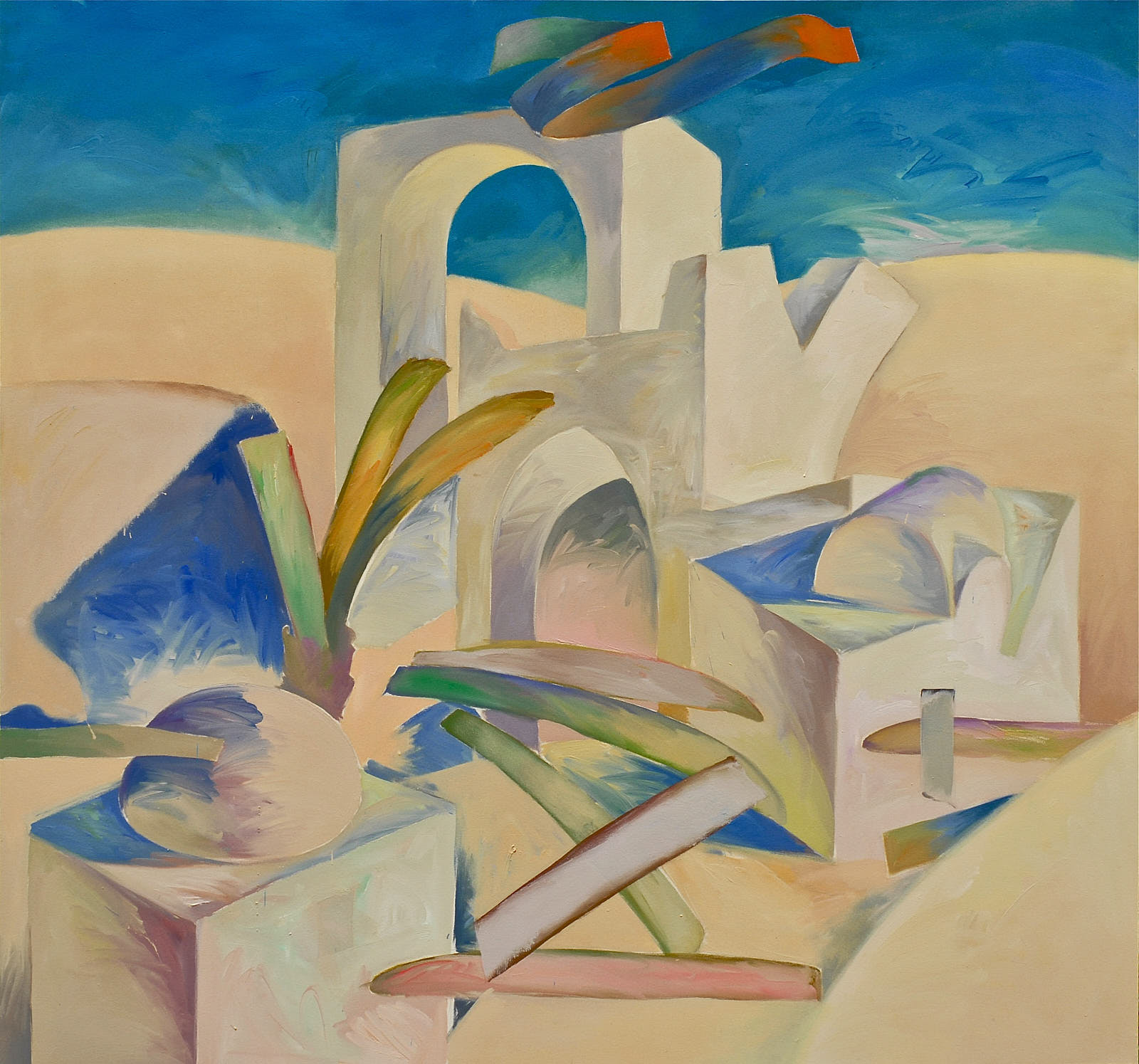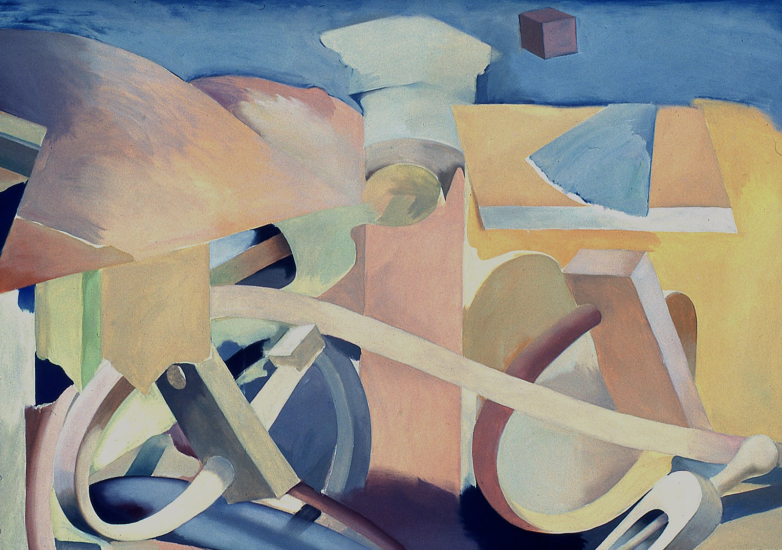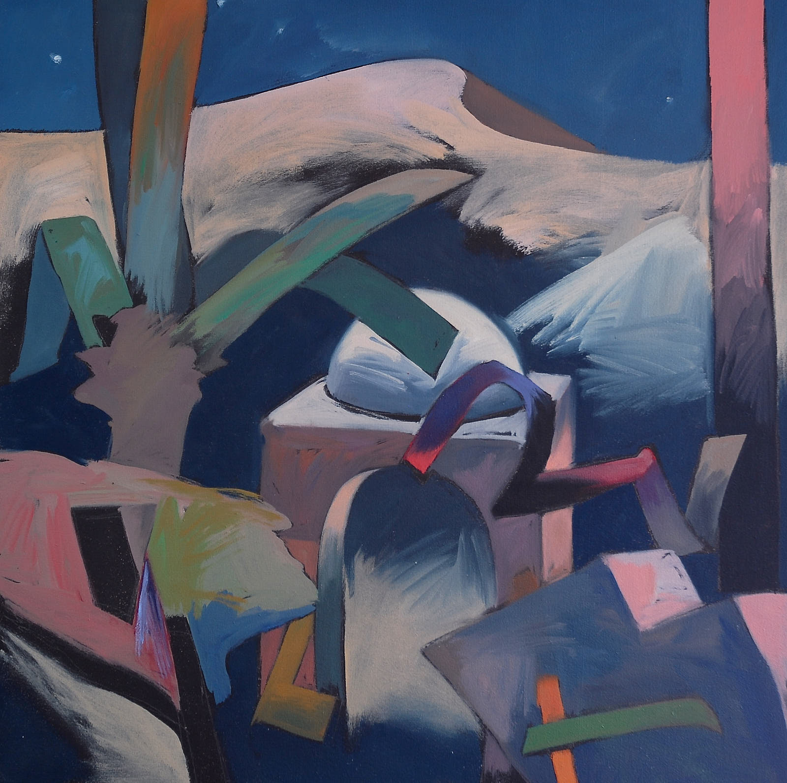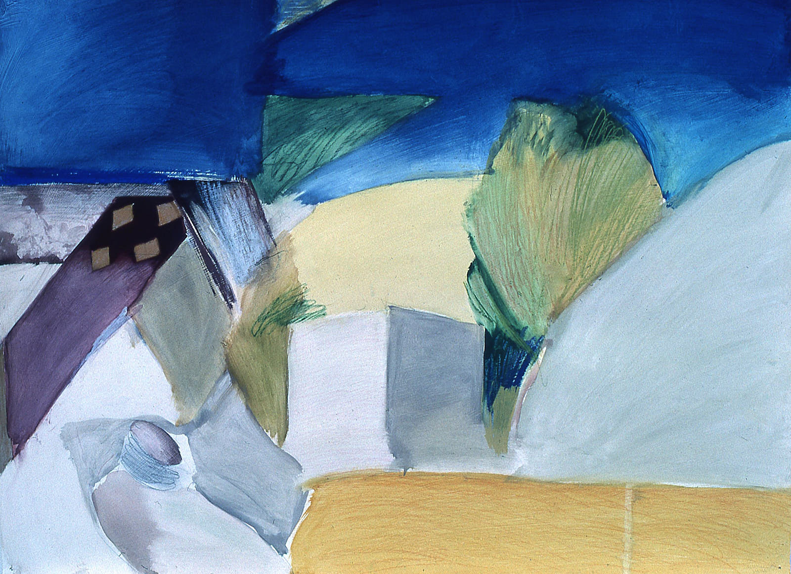 “His earliest landscapes are pictures from the West Coast made during Shank’s time living in San Francisco. Interested in perspective and spatial considerations, these works reflect nuances of location that are fragmented and abstract in presentation. Shank’s signifiers become more literal overtime, as his interest in the form of nature (specific flora and fauna) and cubism become increasingly evident in ‘San Francisco Bay with Iceplant’ (1972) and ‘The Sonora Desert at Ajo’ (1973).”