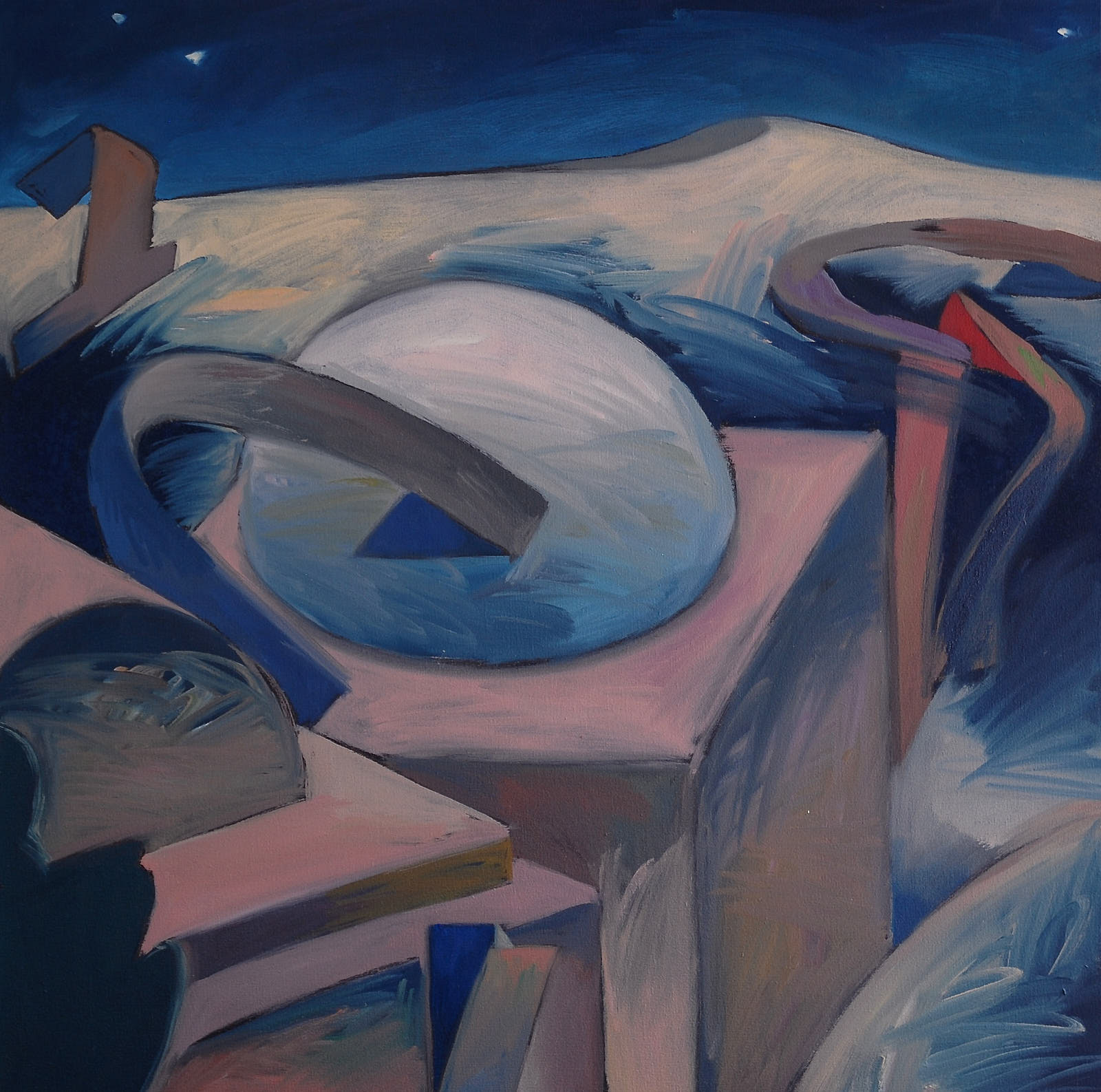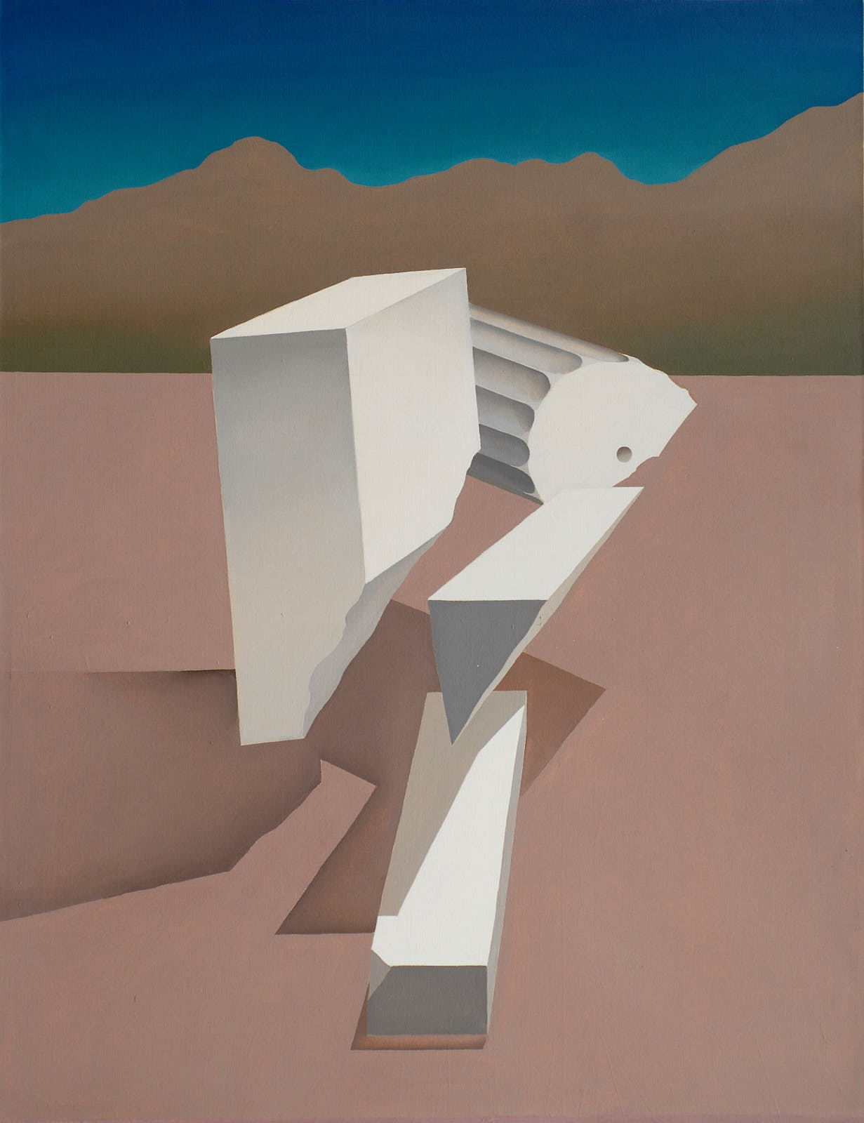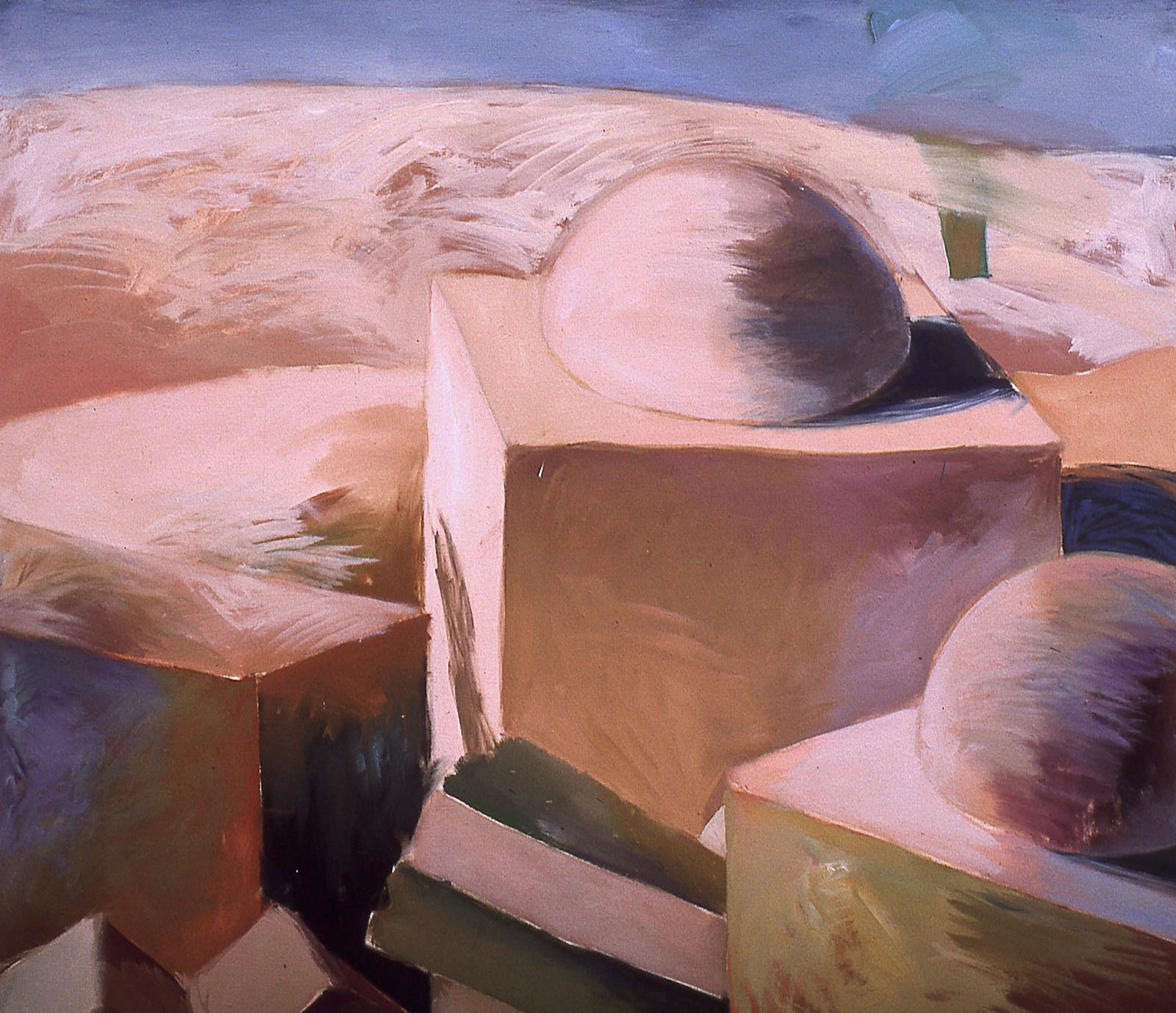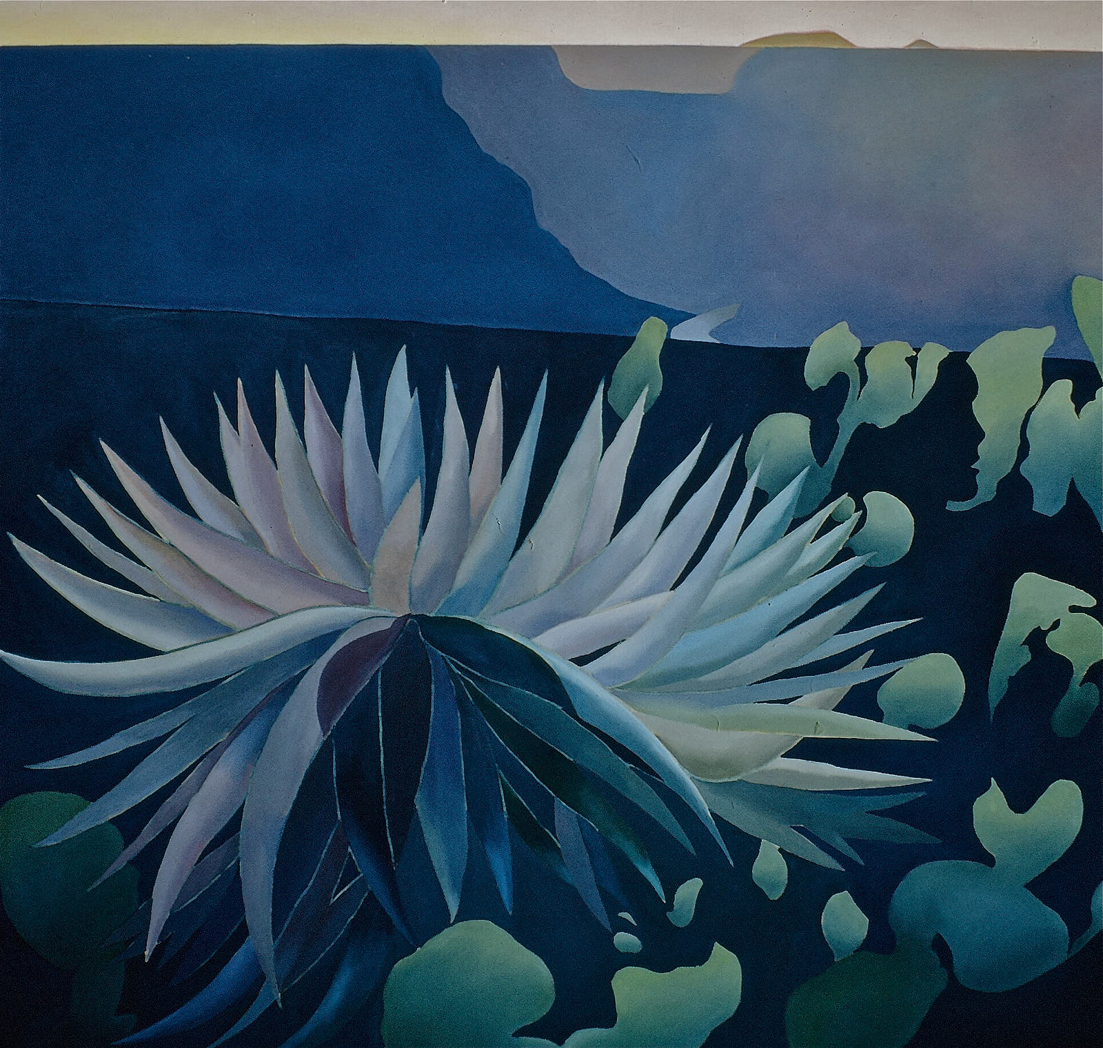 “His earliest landscapes are pictures from the West Coast made during Shank’s time living in San Francisco. Interested in perspective and spatial considerations, these works reflect nuances of location that are fragmented and abstract in presentation. Shank’s signifiers become more literal overtime, as his interest in the form of nature (specific flora and fauna) and cubism become increasingly evident in ‘San Francisco Bay with Iceplant’ (1972) and ‘The Sonora Desert at Ajo’ (1973).”