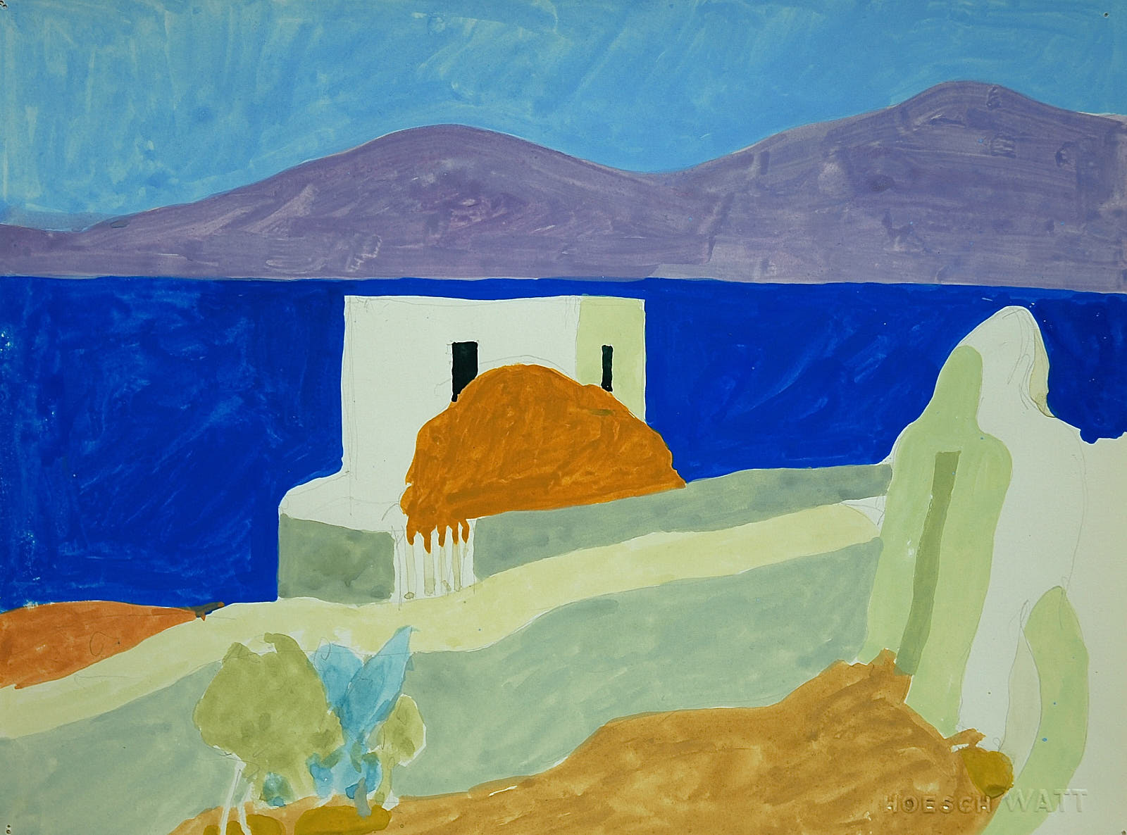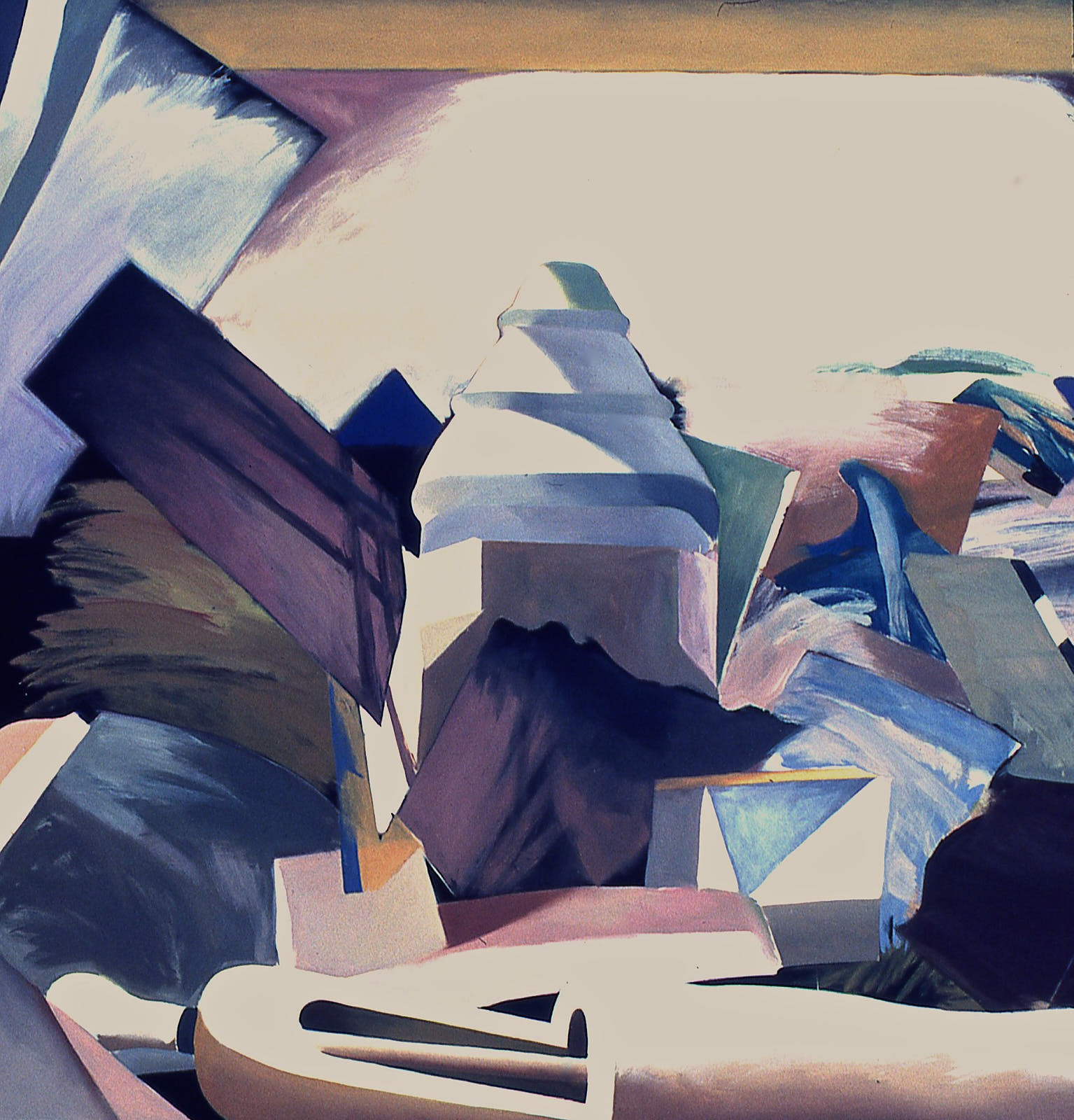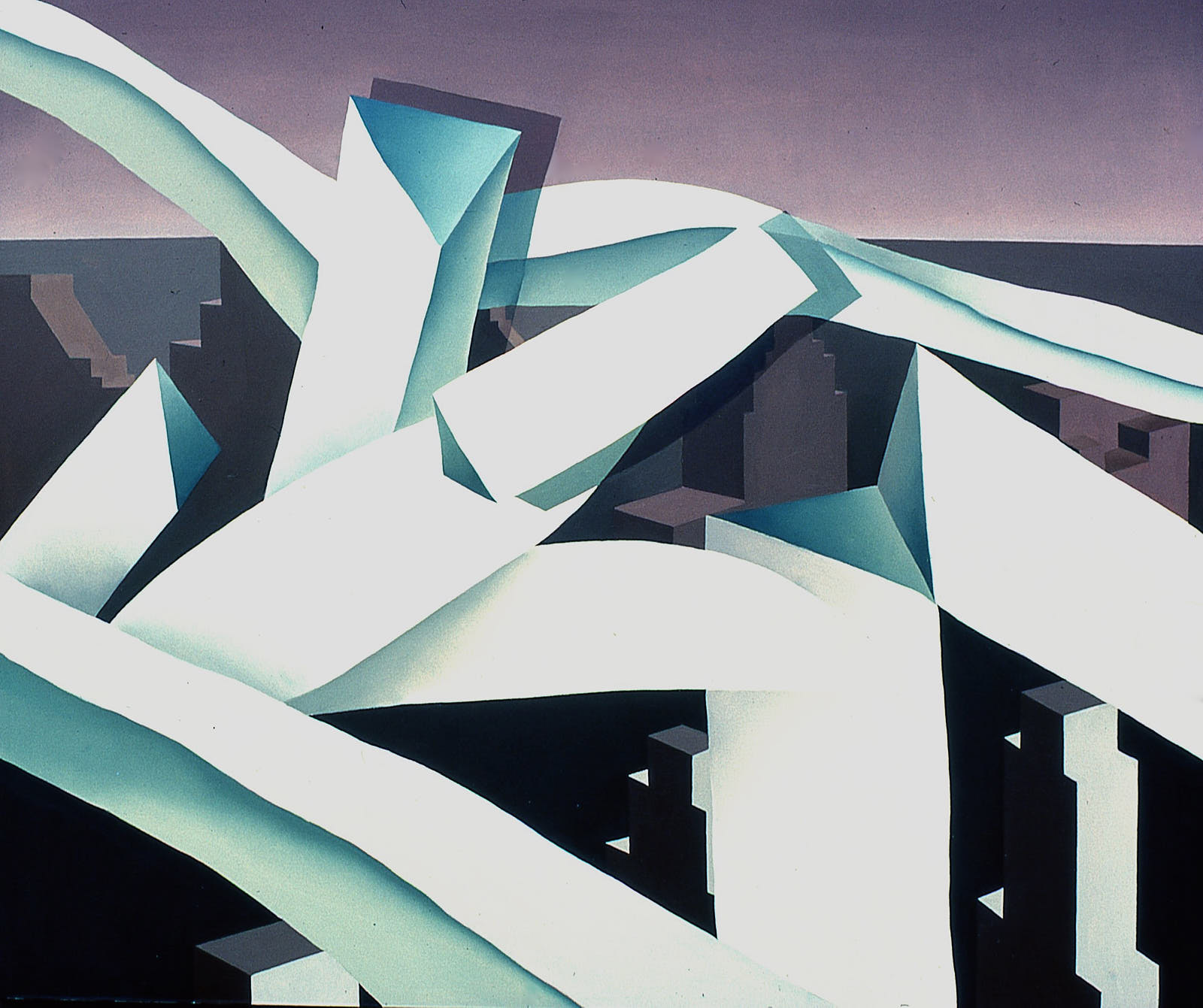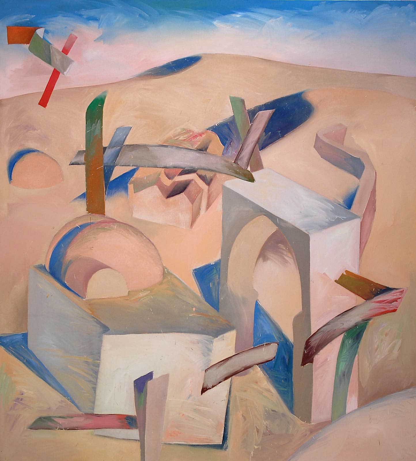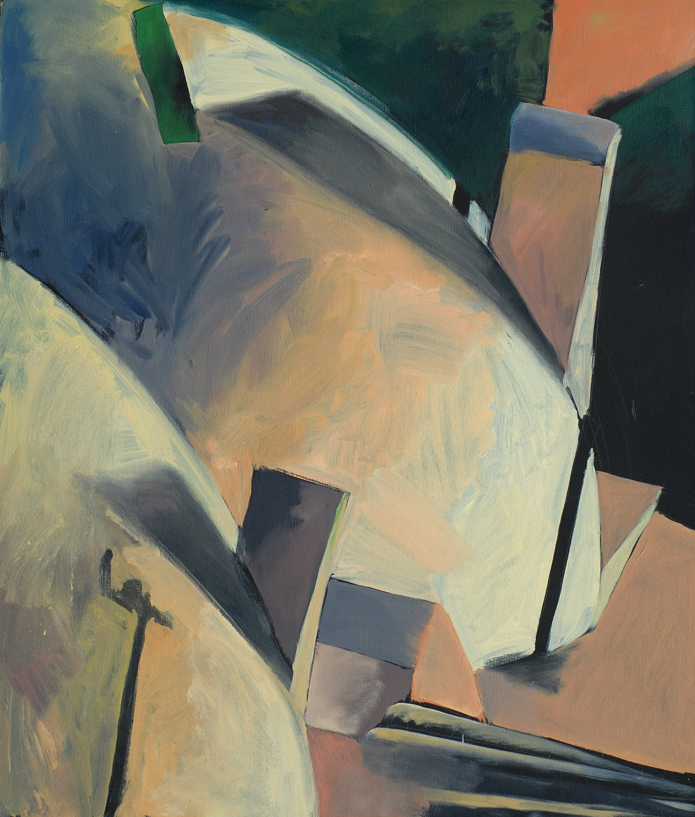 “His earliest landscapes are pictures from the West Coast made during Shank’s time living in San Francisco. Interested in perspective and spatial considerations, these works reflect nuances of location that are fragmented and abstract in presentation. Shank’s signifiers become more literal overtime, as his interest in the form of nature (specific flora and fauna) and cubism become increasingly evident in ‘San Francisco Bay with Iceplant’ (1972) and ‘The Sonora Desert at Ajo’ (1973).”